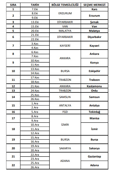 8 – 9 Ekim tarihinde Erzurum’da yapılan seçmelerde ise Erzurumspor ve Erzincanspor kulüplerinin  U14 takımları ile Erzurum, Erzincan, Bayburt ve Bingöl karmalarının müsabakaları izlendi.